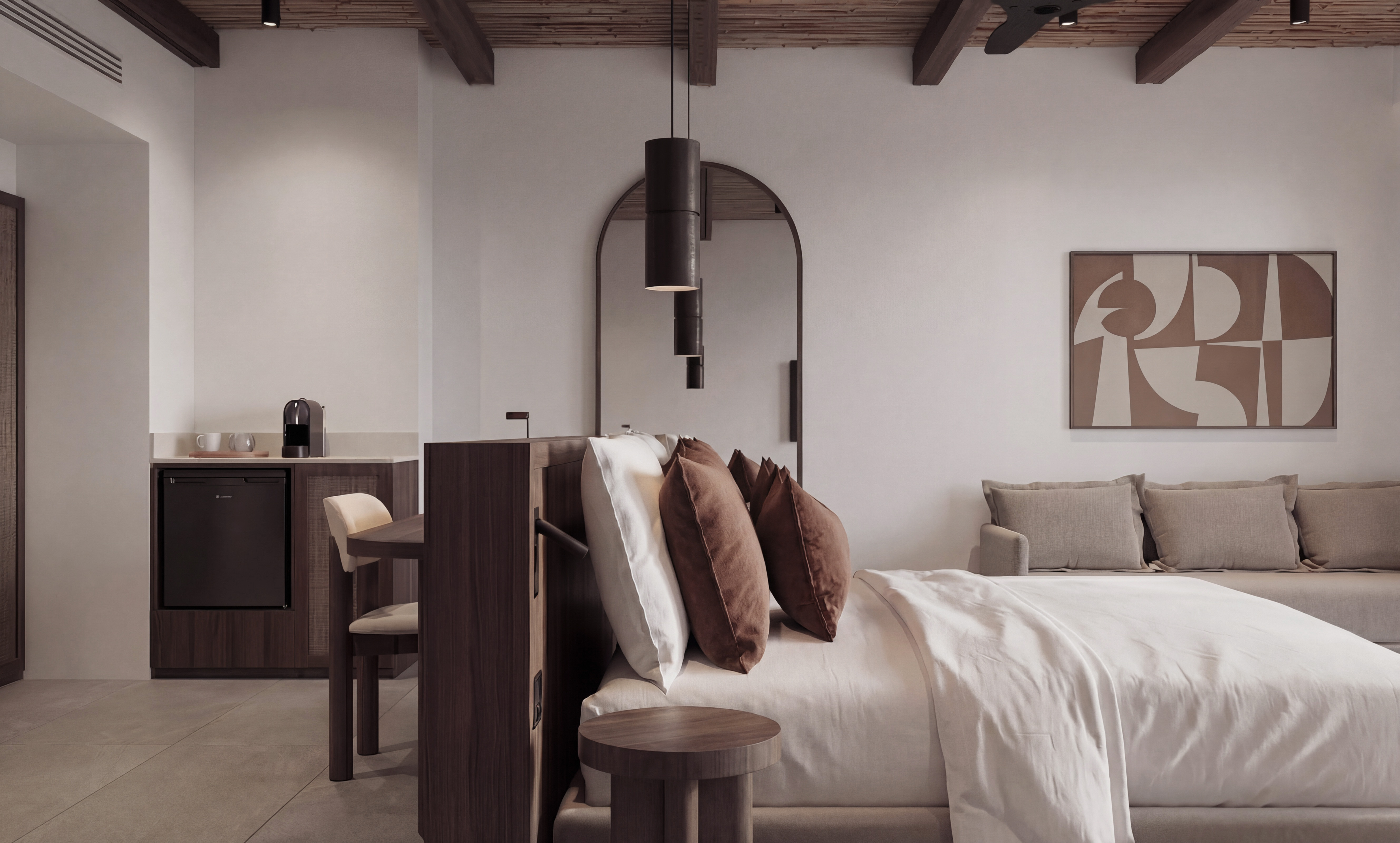 Accommodating up to three guests, the suite offers a serene blend of modern luxury and comfort, making it the ideal choice for a memorable getaway with loved ones in southern Crete.
