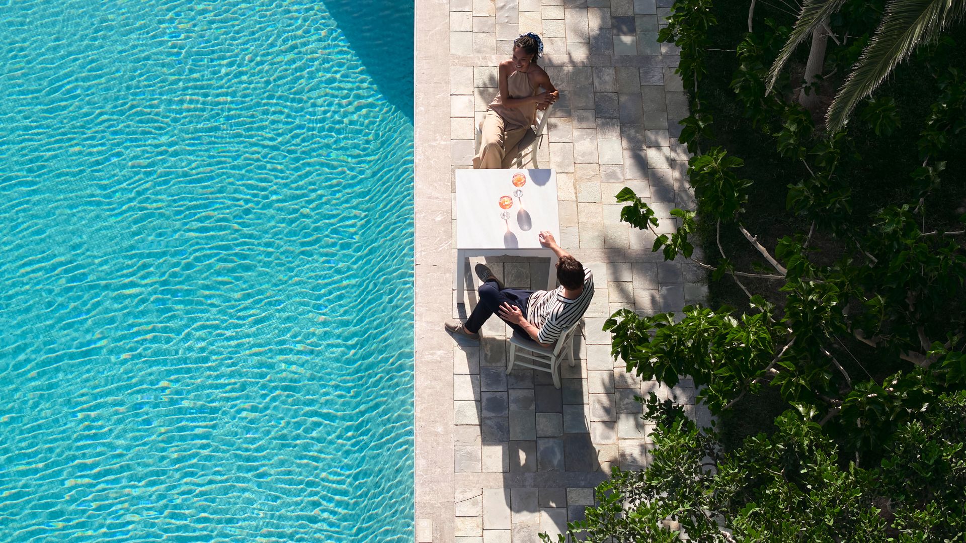 Träumen Sie davon, im Schatten der Palmen einen Eiskaffee zu schlürfen? Die ganztägig geöffnete Poolbar des Paralos Irini Mare serviert Snacks und eine Auswahl an heißen und kalten Getränken wie kalten Frappé, traditionellen griechischen Kaffee oder frisch gepressten Bio-Saft aus unseren Orangenhainen in der Nähe der archäologischen Stätte von Phaistos. Unser hausgemachter Paralos Irini Mare Ice Tea ist ein erfrischender Genuss aus einer Mischung aus kretischem Bergtee, Thymianhonig und selbst angebauten Kräutern aus dem botanischen Garten des Hotels. Ein weiteres Highlight der Palm Bar ist der frisch gepresste Granatapfelsaft, der aus Granatäpfeln aus der Messara-Ebene gewonnen wird. Entdecken Sie unsere handverlesene Auswahl an kretischen Weinen und Cocktails, die unsere Leidenschaft für deliziöse Produkte widerspiegeln, und gönnen Sie sich eine entspannende Pause zwischen den Aktivitäten und entfliehen Sie der blendenden griechischen Sonne in einer ruhigen Umgebung am Pool, egal zu welcher Tageszeit.