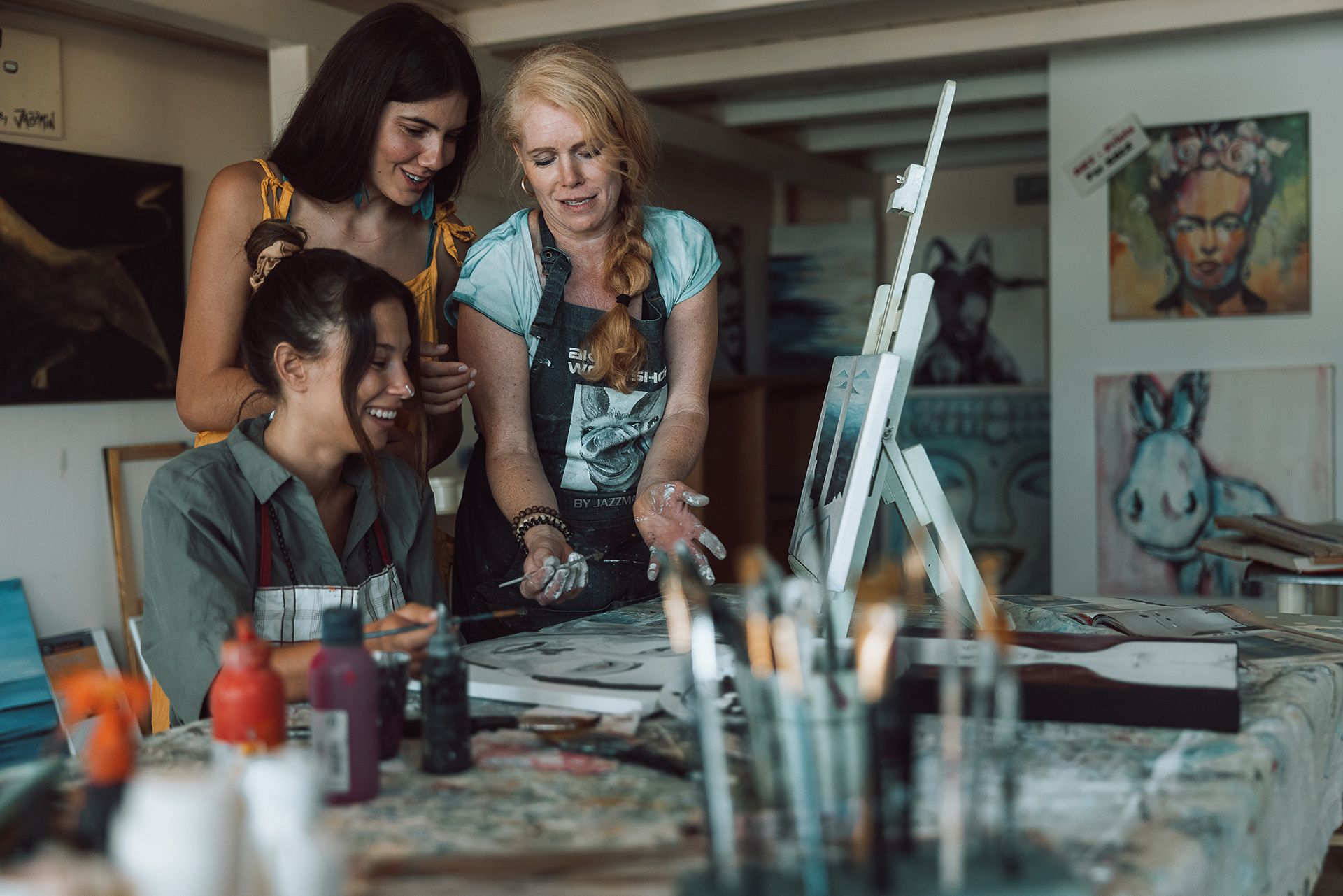 Entdecken Sie Ihre kreative Seite mit unseren Malkursen unter freiem Himmel unter der Leitung von Jazzmin, einer deutschen Auswanderin, die sich vor vielen Jahren in Griechenland verliebt hat und seitdem ein wertvolles Mitglied unserer Gemeinschaft geworden ist. Ihre Leidenschaft für Kunst und ihre Liebe zu Griechenland werden Sie dazu inspirieren, ein einzigartiges handgefertigtes Souvenir aus Ihrem Urlaub in Südkreta zu schaffen.