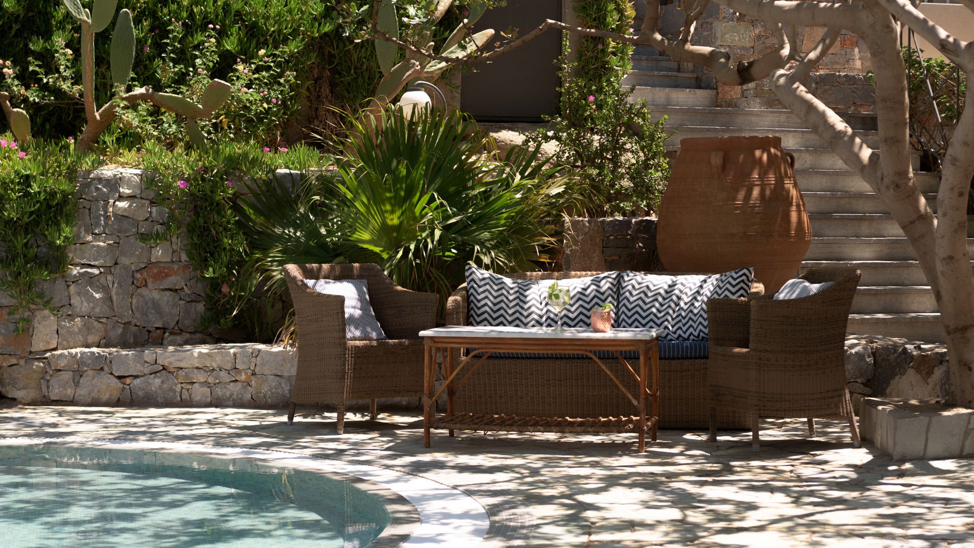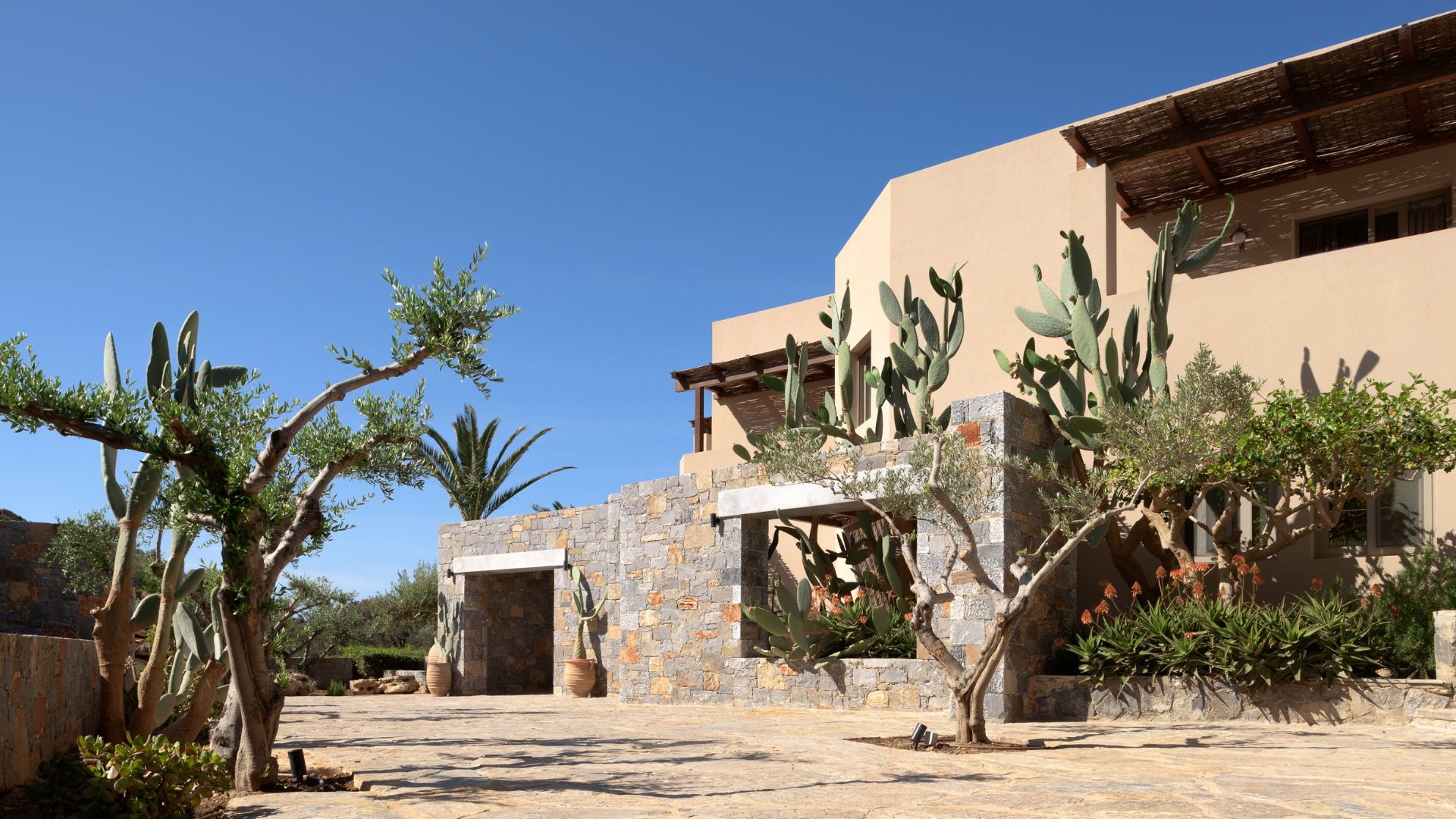 Imagine unwinding in a natural setting filled with fragrant Cretan herbs and flowers, iconic palm trees, orchards, and a two-century-old olive tree that will awaken your senses.